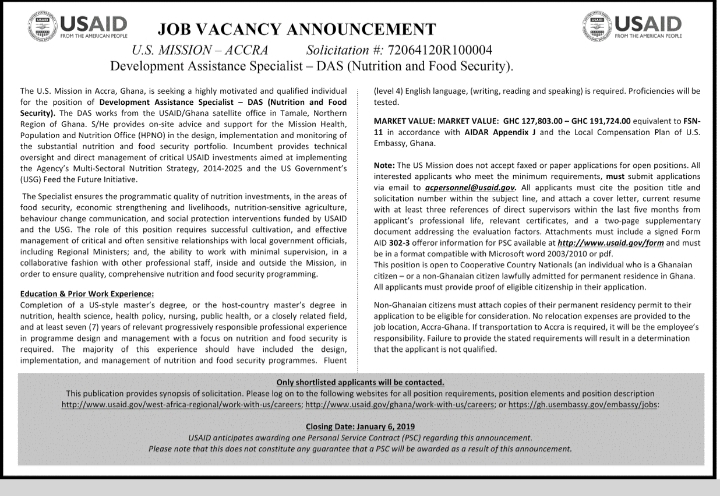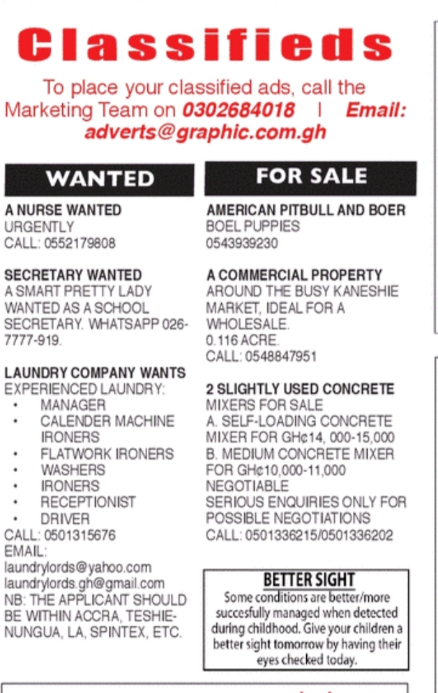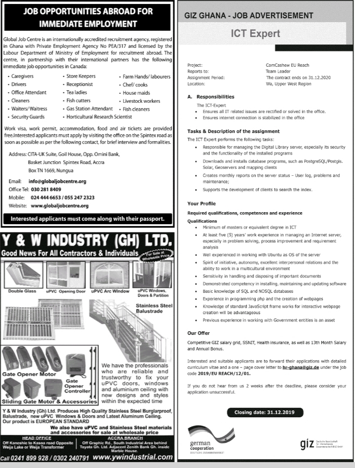 Prospective job seekers can find below the advertised jobs in the December 23, 2019 edition of Daily Graphic as published today in the paper.