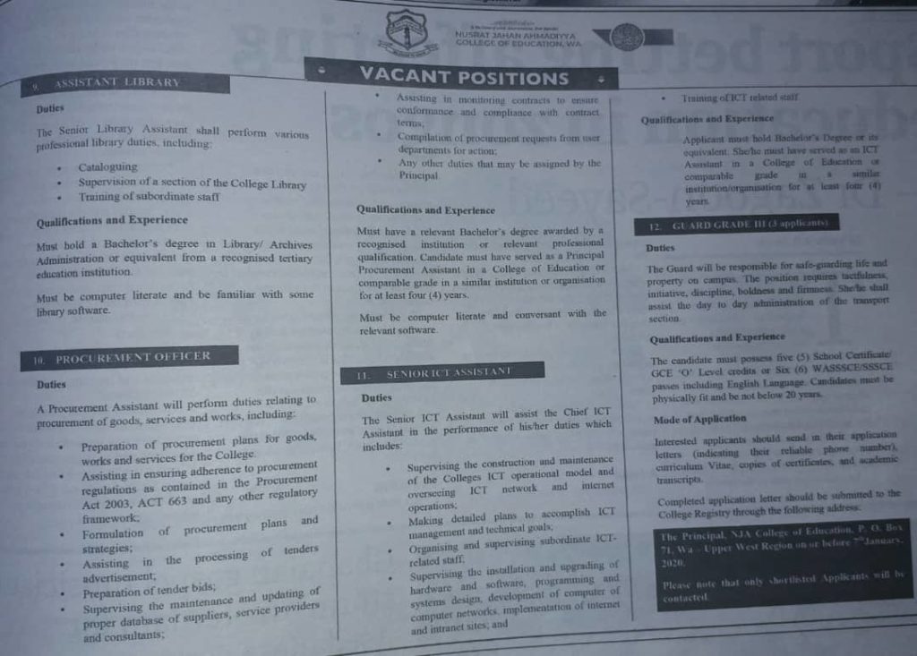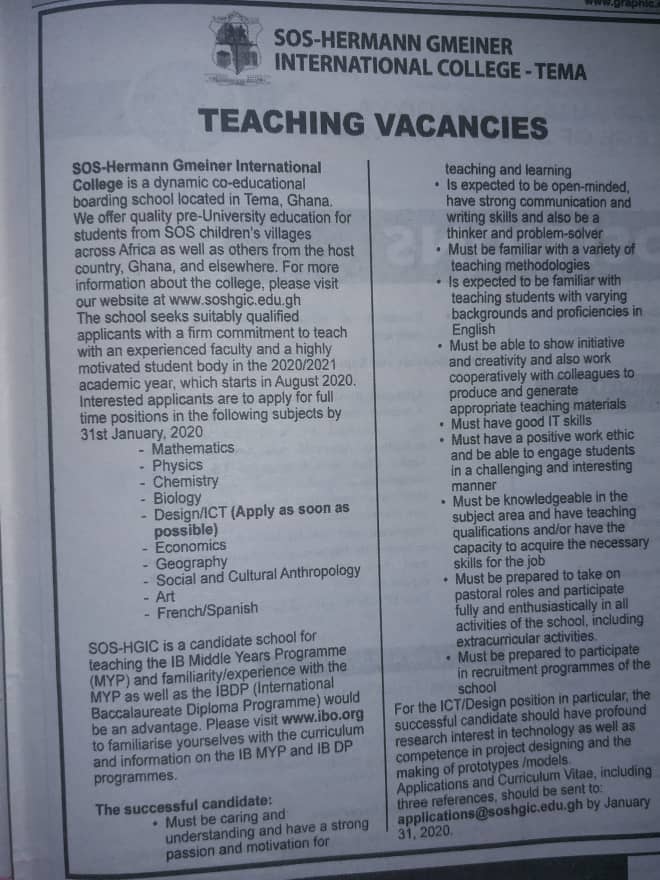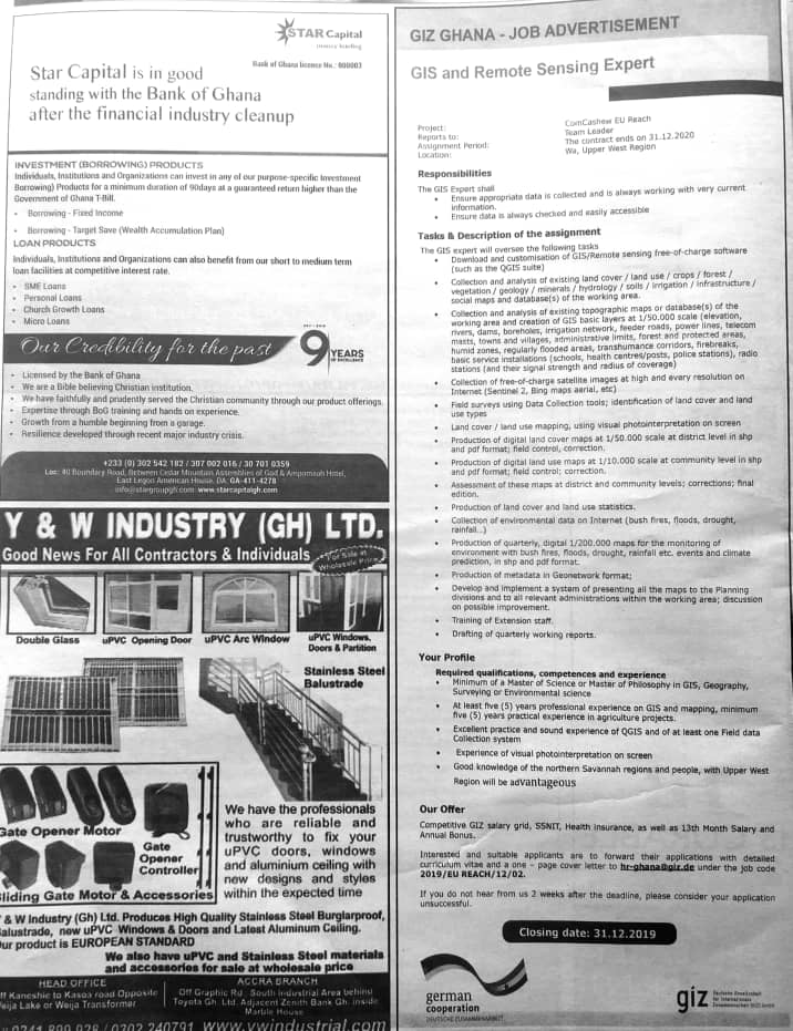 Prospective job seekers can find below the advertised jobs in the December 24, 2019 edition of Daily Graphic as published today in the paper.