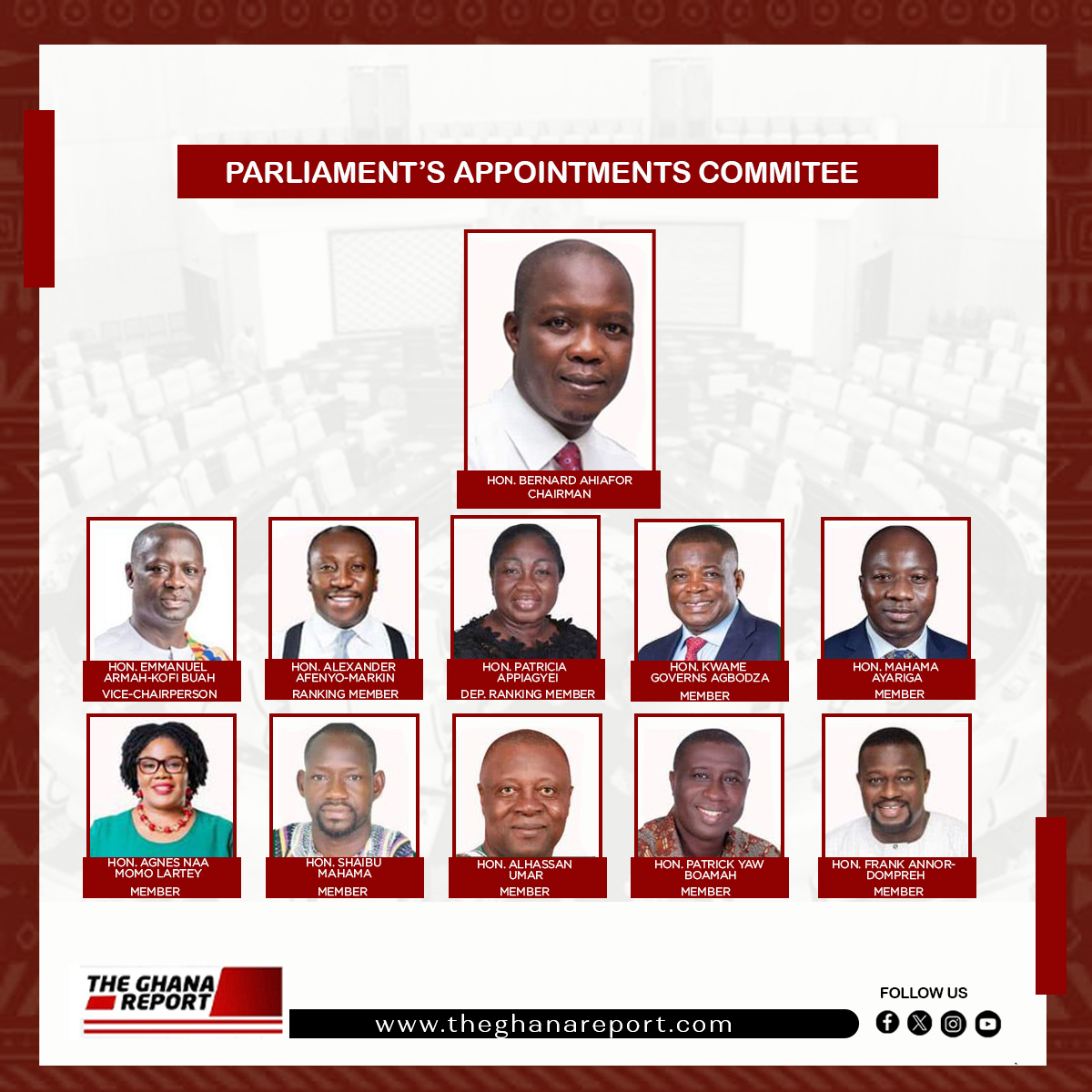 Other key personalities on the committee include Alexander Afenyo-Markin, the Minority Leader, as the Ranking Member, and Patricia Appiagyei as the Deputy Ranking Member.