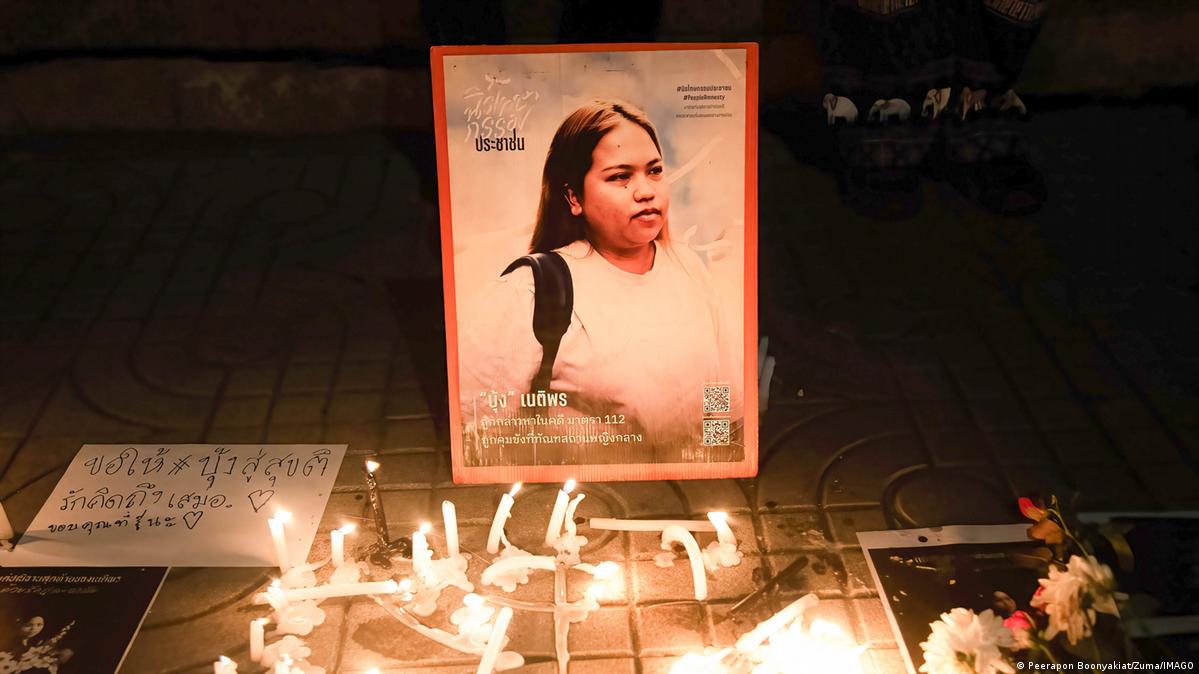 Supporters of Netiporn "Bung" Sanesangkhom put candles at a vigil in her…