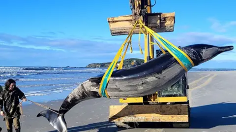 A whale that was found dead on a beach in New Zealand…