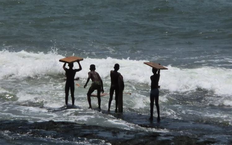 Alongside a beautiful sight of canoes lined up at sea in search…