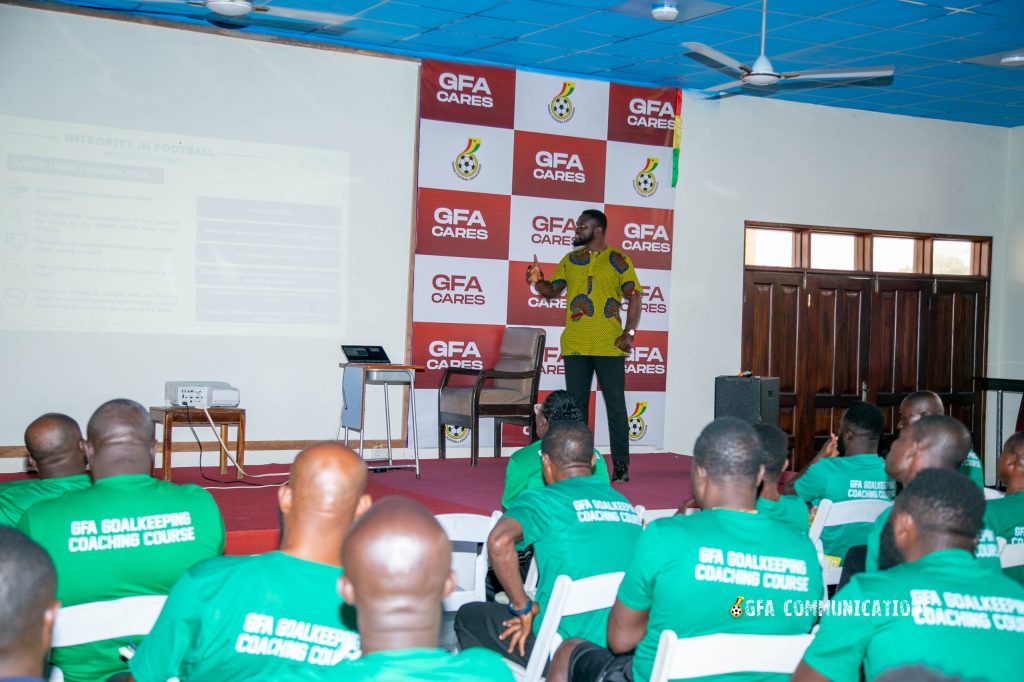Coaches attending the Goalkeepers Training Course at the Ghanaman Soccer Center of…