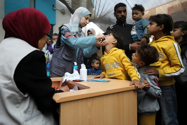 The Palestinian Red Crescent Society said hundreds of children made their way…