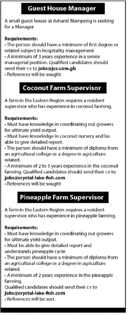 Prospective job seekers can find below the advertised jobs in the July 3, 2020 edition of Daily Graphic as published in the paper today.