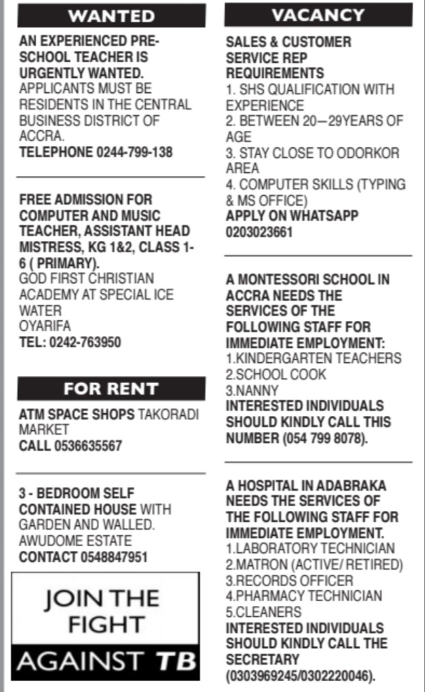 Prospective job seekers can find below the advertised jobs in the December 22, 2023, edition of Daily Graphic as published in the paper today.