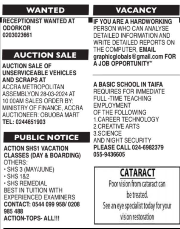 Prospective job seekers can find below the advertised jobs in the March 15, 2024, edition of Daily Graphic as published in the paper today.