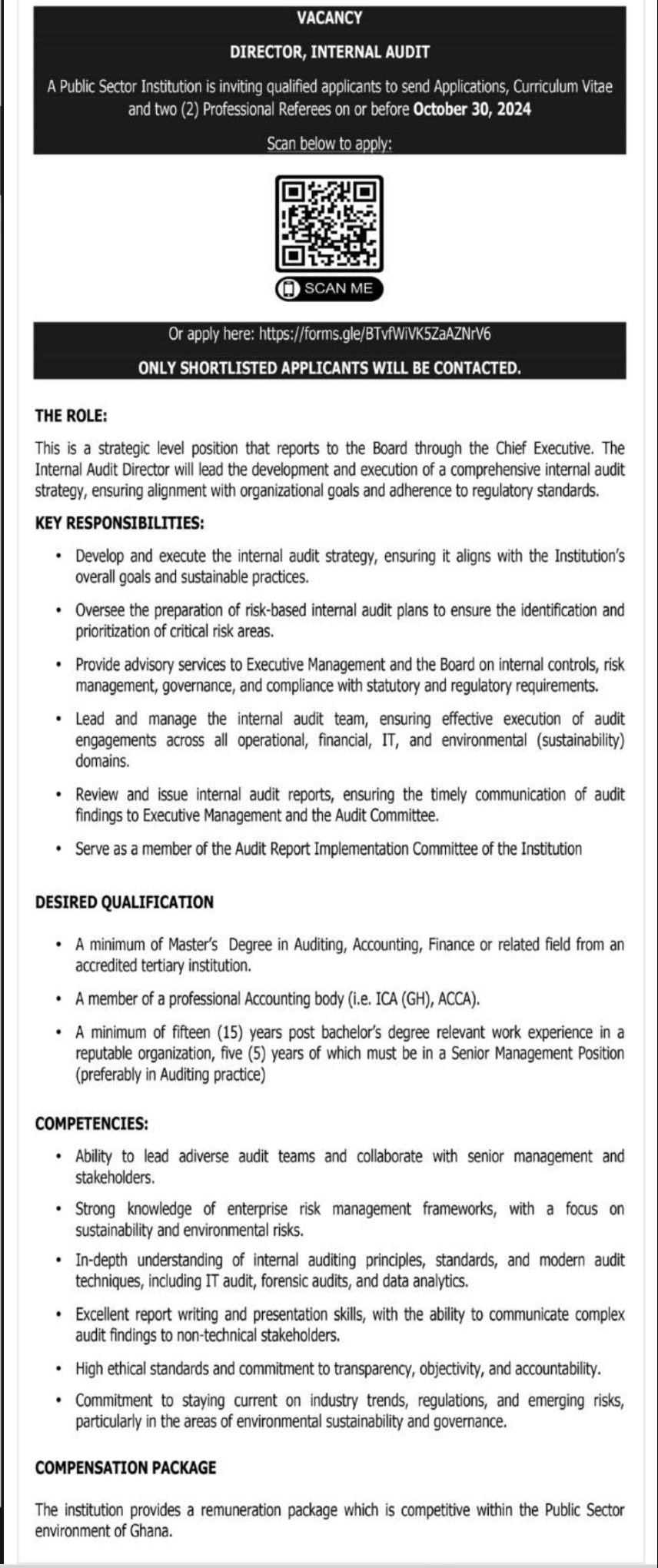 Prospective job seekers can find below the advertised jobs in the October 18, 2024, edition of Daily Graphic as published in the paper today.