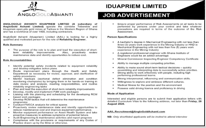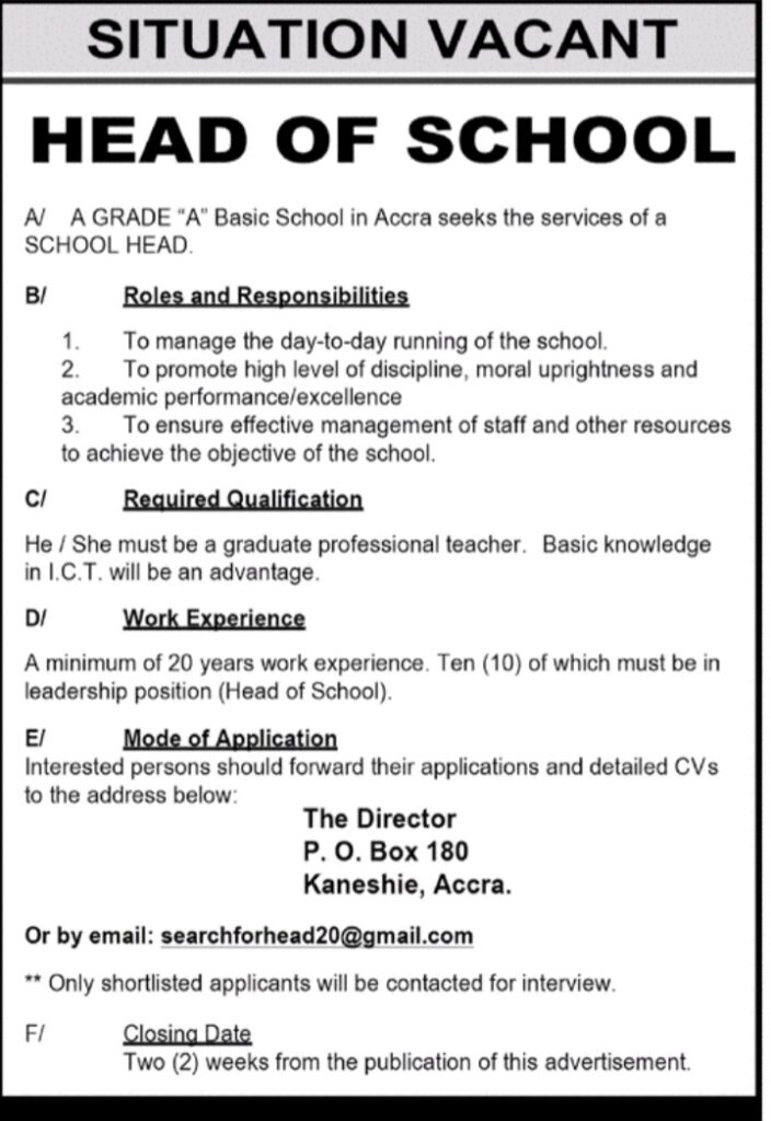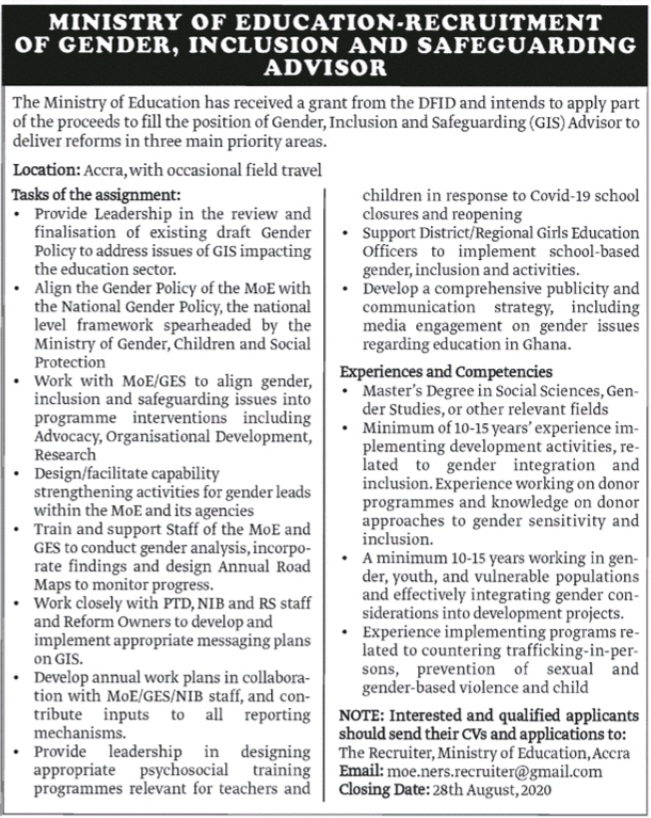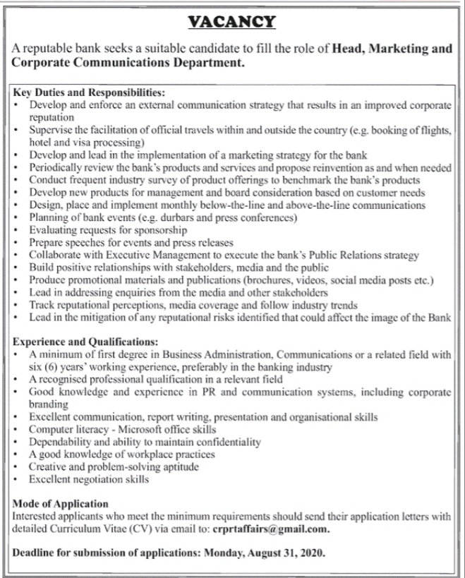 Prospective job seekers can find below the advertised job in the August 21, 2020 edition of Daily Graphic as published in the paper today.