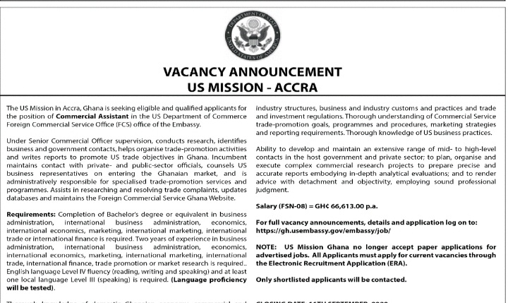 Prospective job seekers can find below the advertised job in the August 28, 2020 edition of Daily Graphic as published in the paper today.