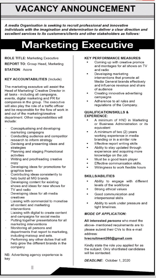 Prospective job seekers can find below the advertised job in the September 25, 2020 edition of Daily Graphic as published in the paper today.