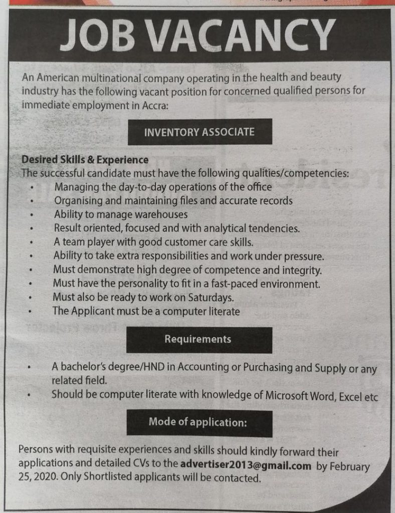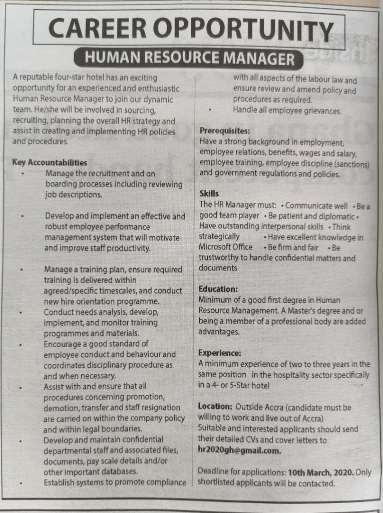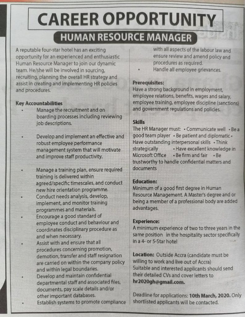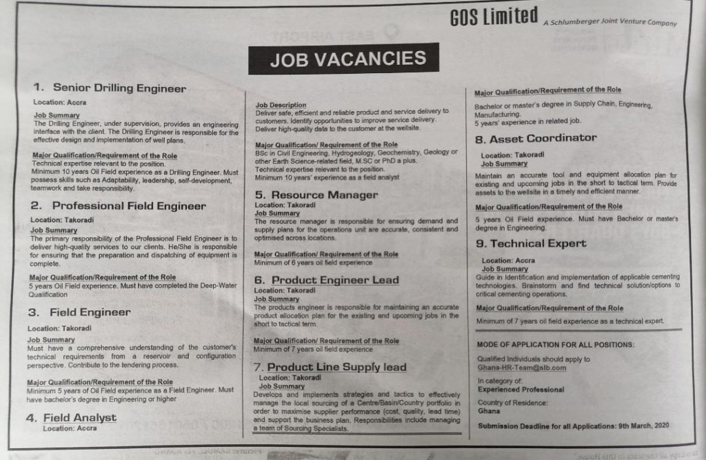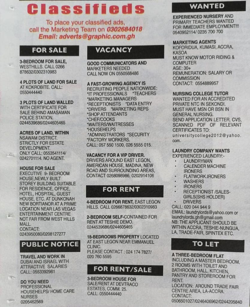 Prospective job seekers can find below the advertised jobs in the February 21, 2020 edition of Daily Graphic newspaper as published in the paper today.