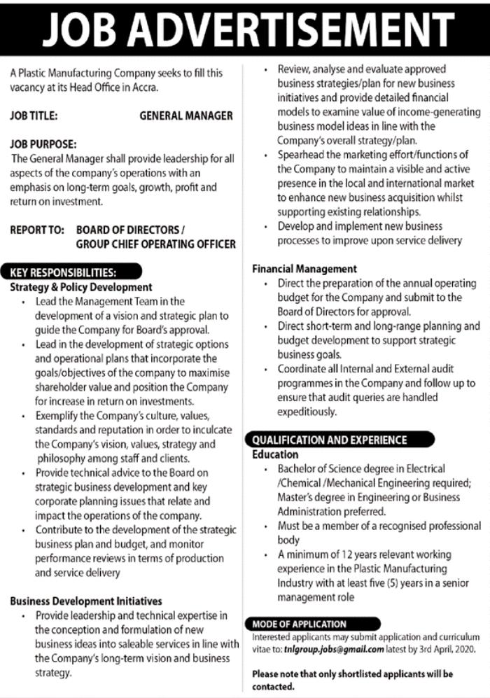 Prospective job seekers can find below the advertised jobs in the March 27, 2020 edition of Daily Graphic as published in the paper today.
