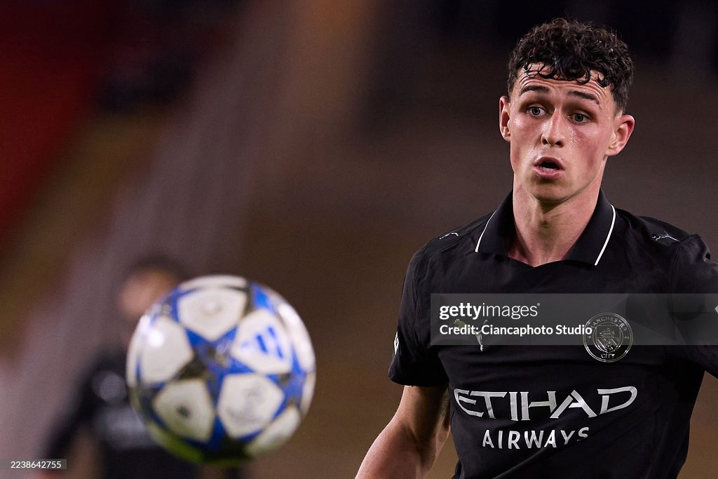 Phil Foden of Manchester City in action during the UEFA Champions League 2025/26 League Phase MD2 match (Photo by Emmanuele Ciancaglini/Ciancaphoto Studio/Getty Images)