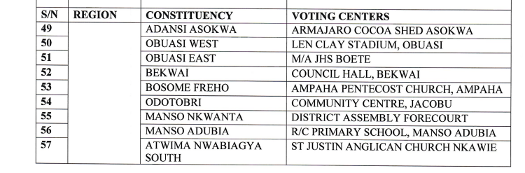 Meanwhile, those in the Eastern Region, in the Ofoase/Ayirebi constituency, will vote at Akokoase SHS.