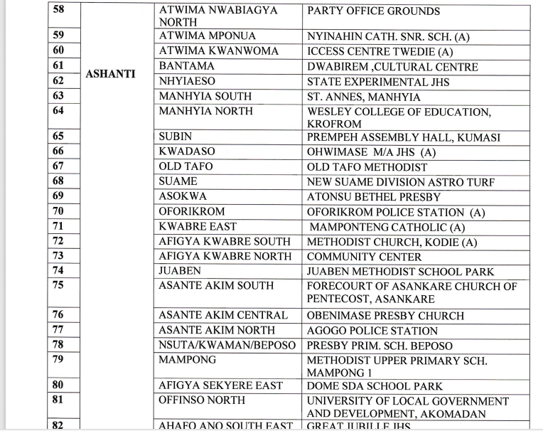 For the Western Region, in the Ahanta West constituency, delegates will vote at Baidoo Bonsu Senior High Technical School.