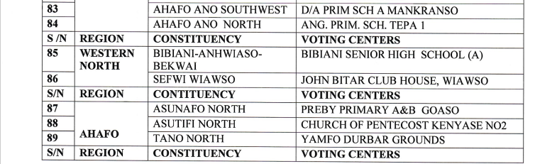 In the Central Region, in the Agona West constituency, voting will be at School Park, Otabilkrom-Agona Swedru.