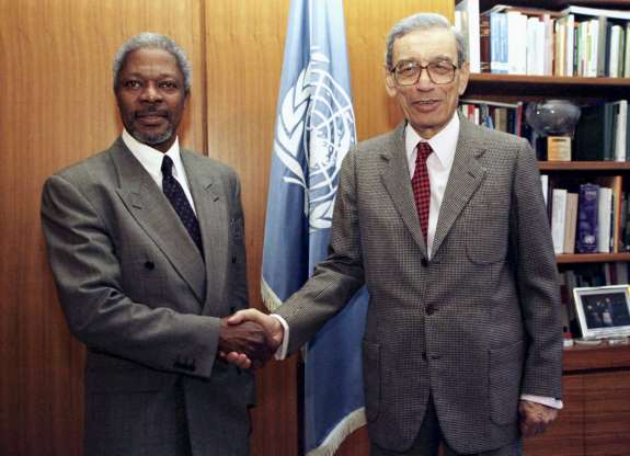 Gallery IN MEMORY OF KOFI ANNAN Story By: kobby Asamoah/ k.boahene@theghanareport.com SHARE Pope Francis greets Kofi Annan, former secretary-general of the United Nations Nelson Mandela with Kofi Annan United Nations Secretary General Boutros Boutros-Ghali and Kofi Annan Kofi Annan and his wife Nane leave the Nieuwe Kerk (New Church) in Amsterdam Yasser Arafat with Kofi Annan Share This Article Facebook Whatsapp Whatsapp LinkedIn Leave a Comment Leave a Reply Cancel replyYour email address will not be published. Required fields are marked *Comment * Name * Email * Website Δ - Advertisement - Recent Updates BoG issues new guidelines for operation of non-resident margin accounts, strengthens FX rules Business IMF optimistic about Ghana’s post-programme outlook, urges sustained fiscal discipline Business ‘By chance or choice, they have clicked’ – why Man City will be champions Sports Streams, schemes, and silent bots Entertainment Fatimatu Abubakar advocates greater female representation in law and politics Headlines News Minority criticises NPRA’s silence over alleged GHS 1 million political transfers Headlines News GCB Bank PLC to acquire Liberia’s third-largest bank Business GTEC blacklists 62 unrecognised institutions, warns public against fake certificates Headlines News Dangote Refinery makes Nigeria a net petrol exporter for the first time Business Fire guts Berekum Cinema Hall, destroys property worth thousands Headlines News