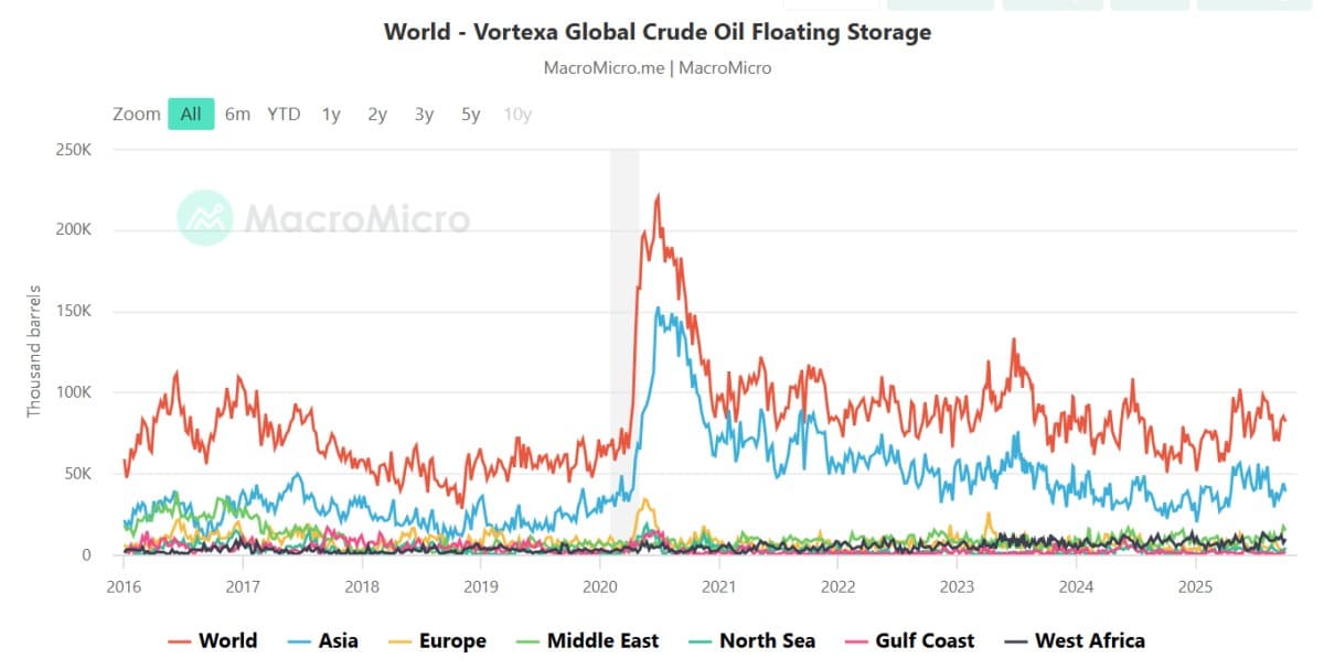 This opacity explains why satellite data like Kpler’s shows a flood of crude on the water while official inventories remain subdued. The ships are real, but much of that oil is still in transit, waiting for discharge or being diverted into opaque Chinese storage. It creates the illusion of a global glut when the physical barrels haven’t yet landed in transparent systems.