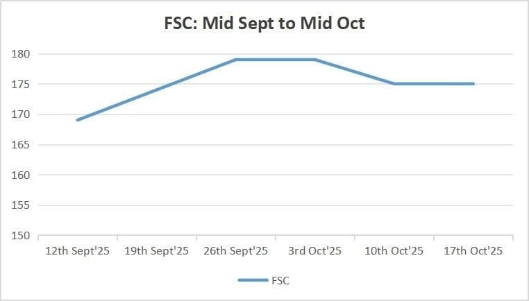Among non-OPEC producers, the United States continues to stand out as the principal source of incremental supply. Recent field data point to a sector that remains remarkably steady, even as global benchmarks soften. According to Primary Vision’s latest indicators, both the Frac Spread Count and Frac Job Count have held near multi-week highs, reflecting stable completion activity across key shale basins. In mid-October, active spreads hovered in the mid-170s while job counts stayed just above 200 – virtually unchanged week-over-week and only slightly below late-September peaks. This steadiness suggests that operators are maintaining a full slate of work despite lower prices, supported by sustained efficiency gains and robust well productivity.