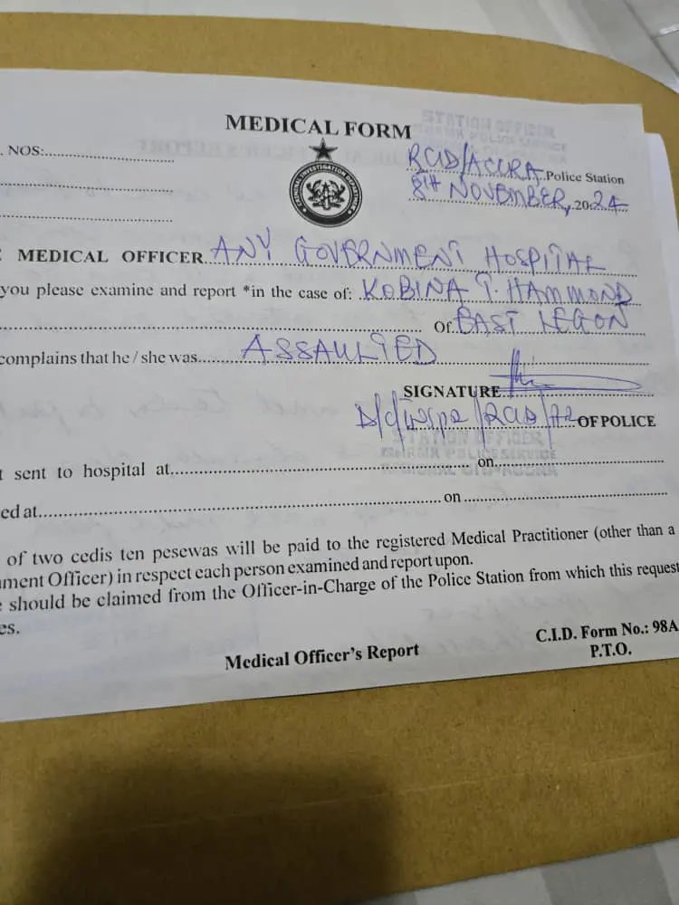 The police have since given the Trade Minister a medical form to be examined at any government hospital.