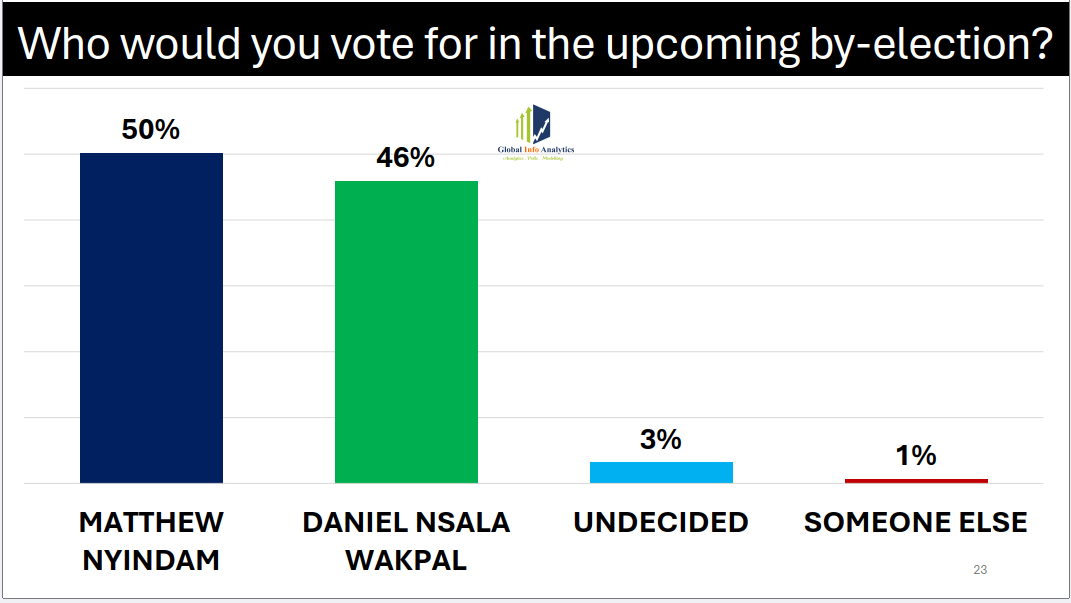 The findings suggest minimal vote switching between the two primary candidates. Approximately two per cent of voters who had previously supported Hon. Nyindam have redirected their support to Mr Wakpal.