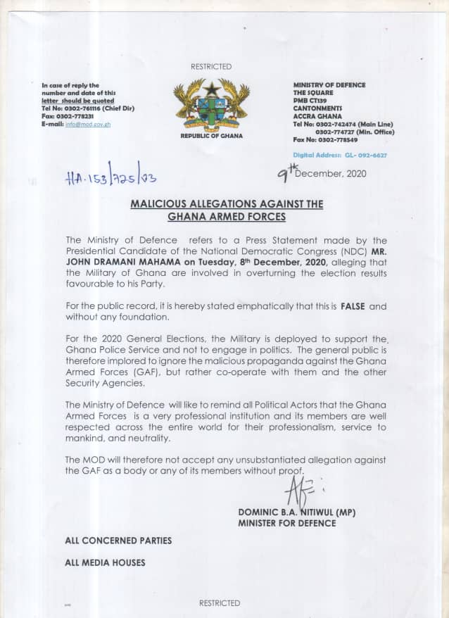 The Ghana Armed Forces anger and frustration comes after the National Democratic Congress presidential candidate John Dramani Mahama claimed the government used the military in a ploy to change the results in NPP’s favour.