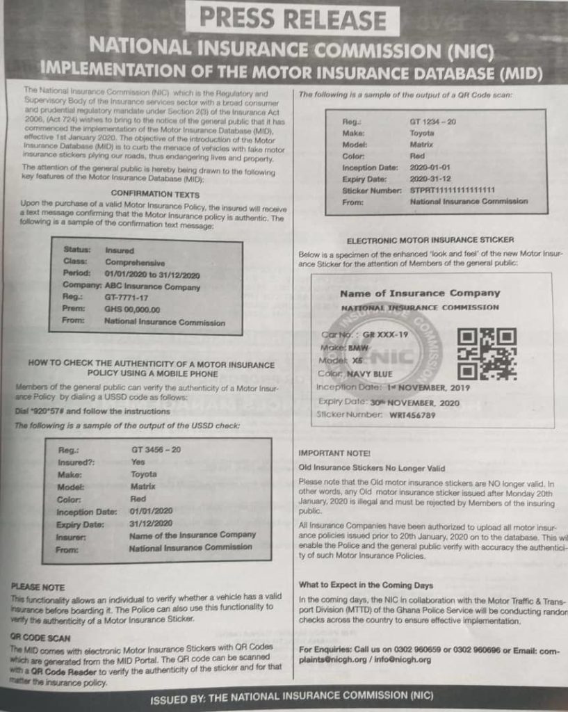 The NIC, in a letter, directed insurance companies to ensure that all vehicles will be captured on the Motor Insurance Database (MID).