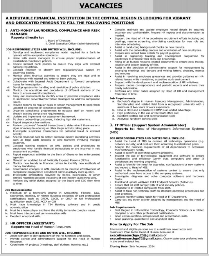Prospective job seekers can find below the advertised jobs in the February 12, 2024, edition of Daily Graphic as published in the paper today.