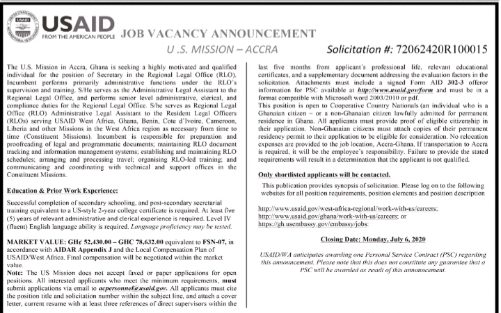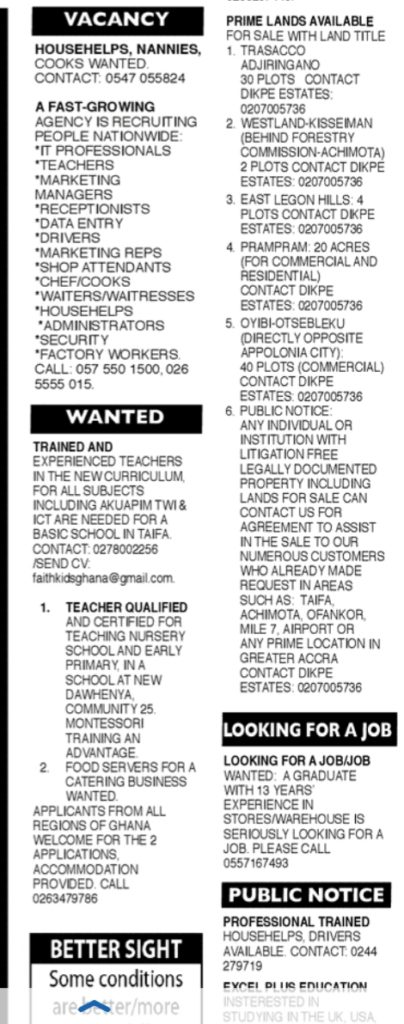 Prospective job seekers can find below the advertised jobs in the June 22, 2020 edition of Daily Graphic as published in the paper today.