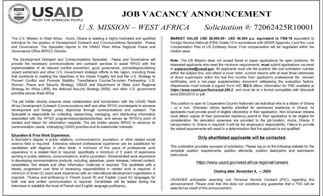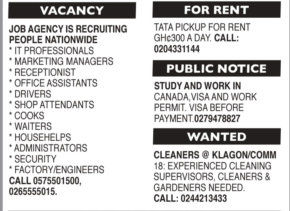 Prospective job seekers can find below the advertised jobs in the October 21, 2024, edition of Daily Graphic as published in the paper today.