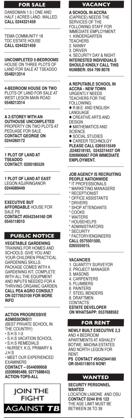 Prospective job seekers can find below the advertised jobs in the November 4, 2024, edition of Daily Graphic as published in the paper today.