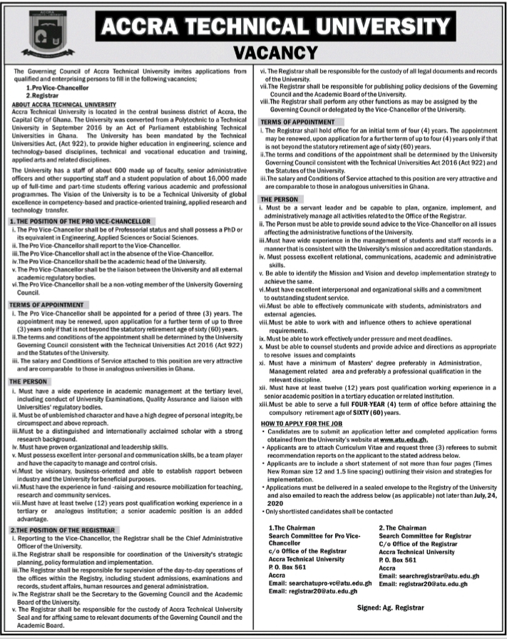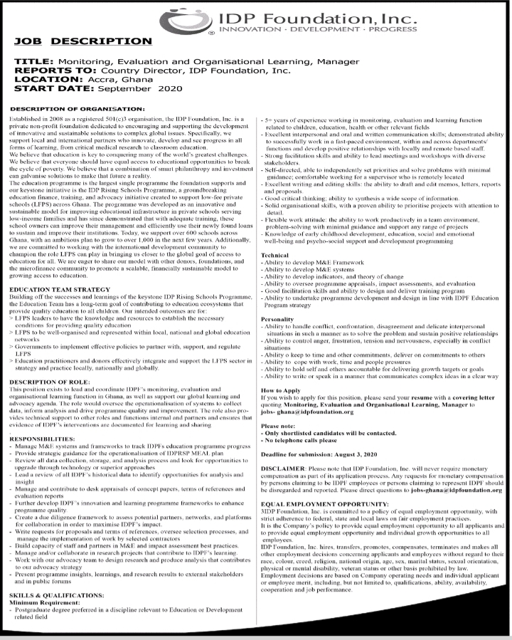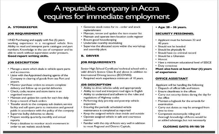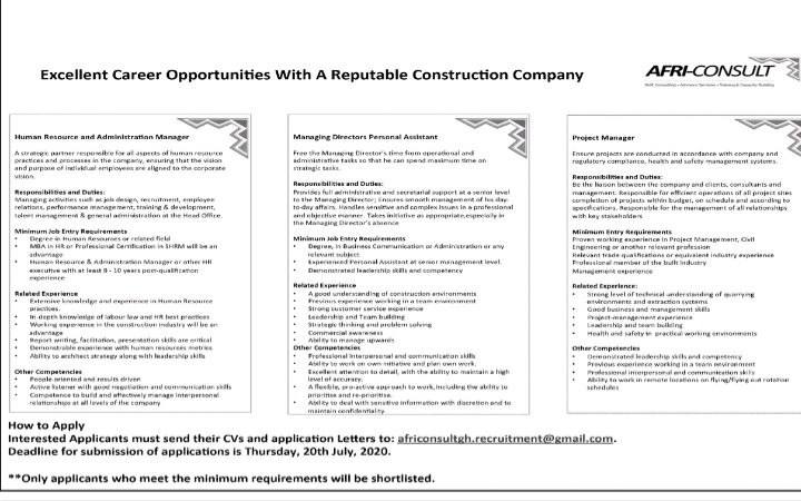 Prospective job seekers can find below the advertised jobs in the July 13, 2020 edition of Daily Graphic as published in the paper today.