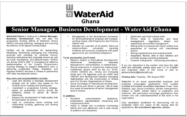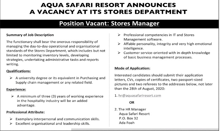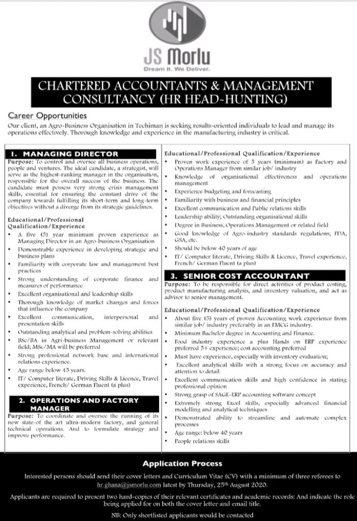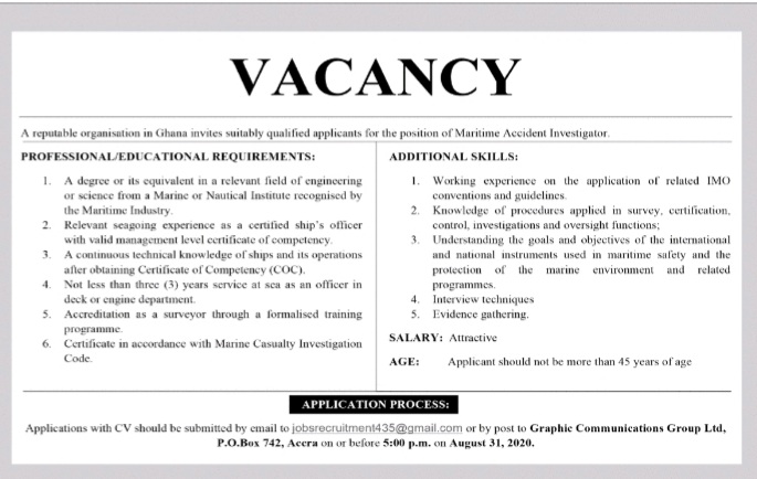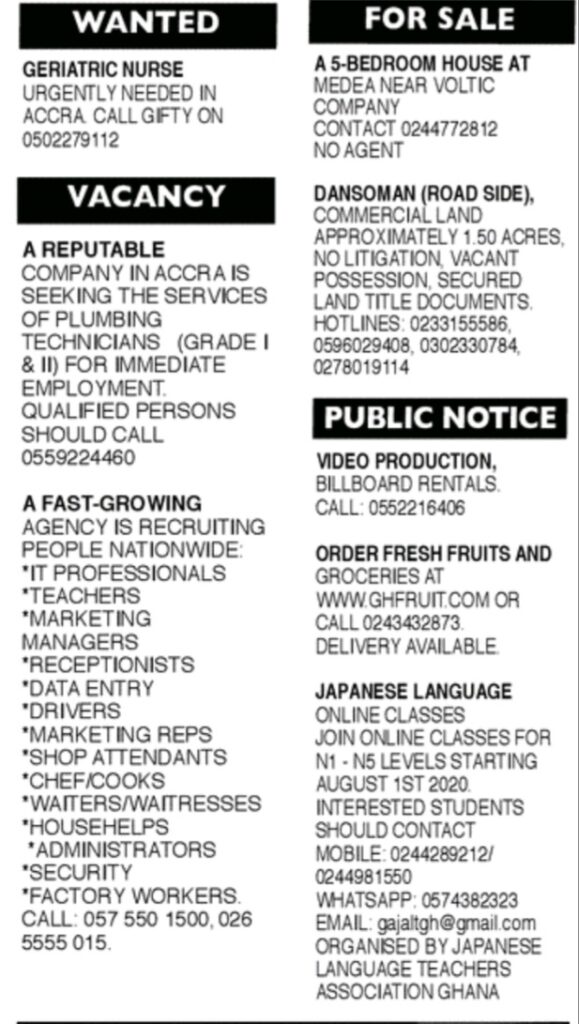 Prospective job seekers can find below the advertised jobs in the August 10, 2020 edition of Daily Graphic as published in the paper today.