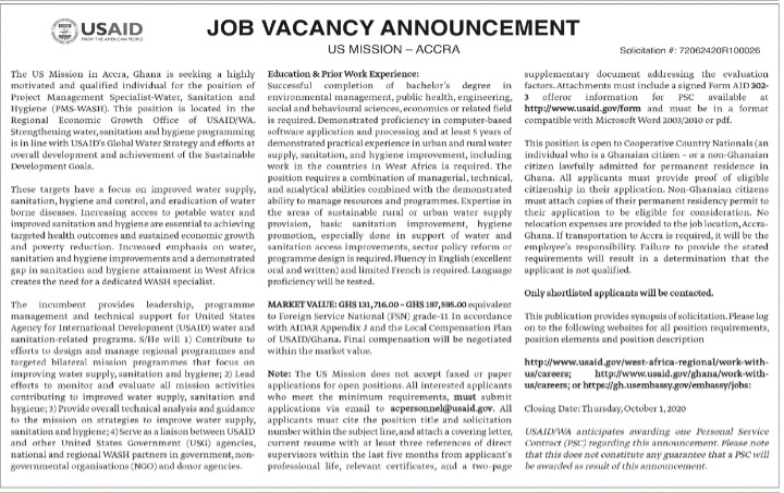 Prospective job seekers can find below the advertised job in the September 21, 2020 edition of Daily Graphic as published in the paper today.