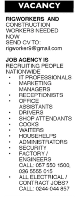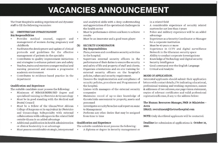 Prospective job seekers can find below the advertised job in the September 28, 2020 edition of Daily Graphic as published in the paper today.