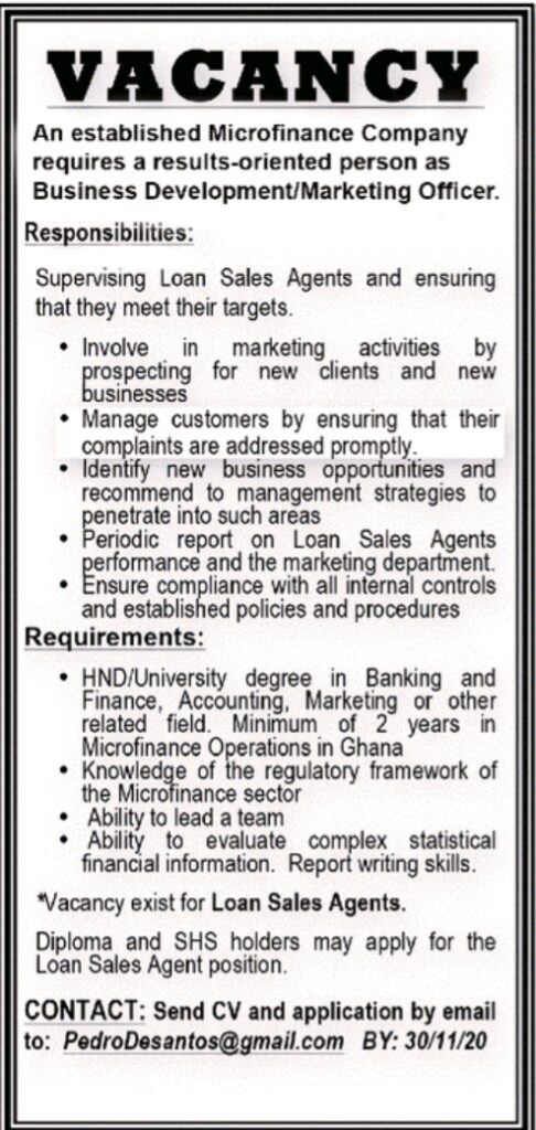 Prospective job seekers can find below the advertised job in the October 19, 2020 edition of Daily Graphic as published in the paper today.