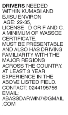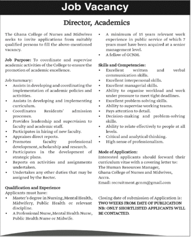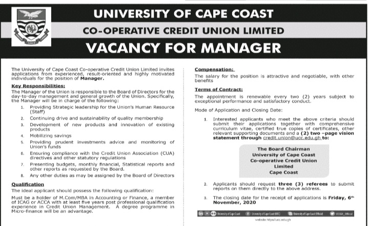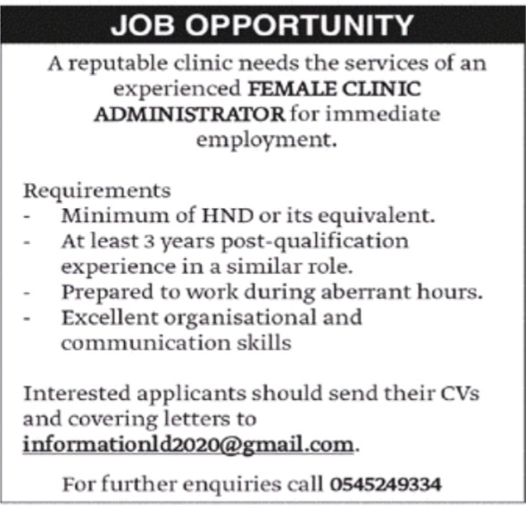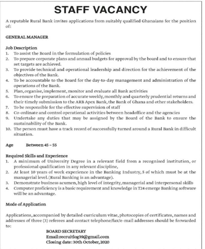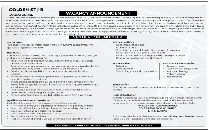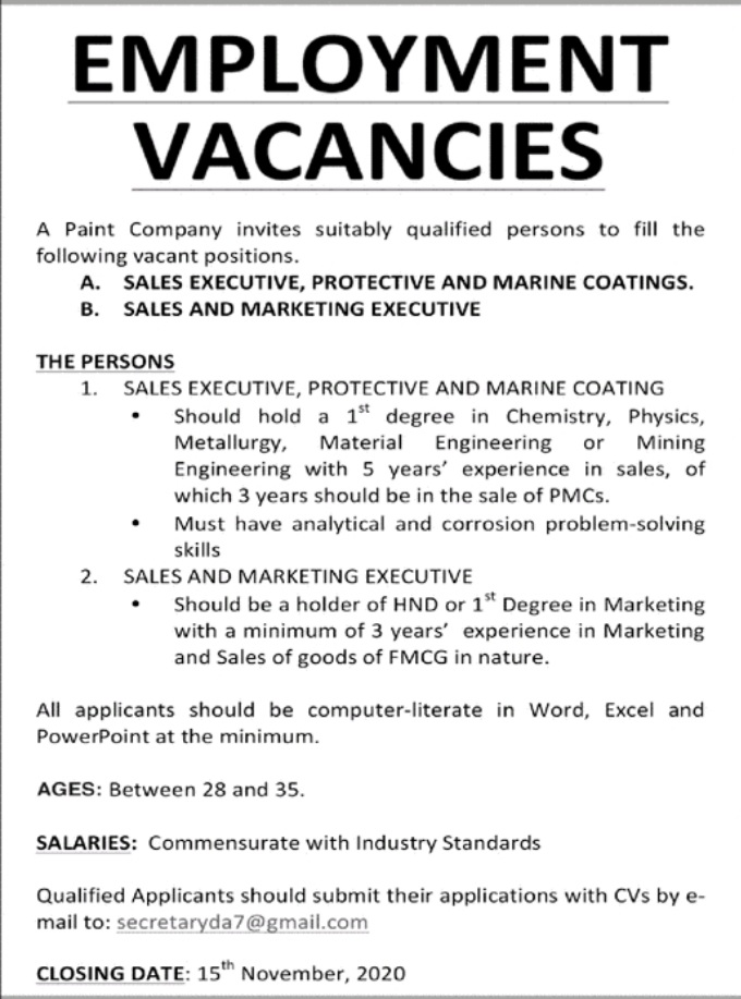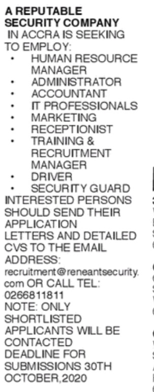 Prospective job seekers can find below the advertised job in the October 26, 2020 edition of Daily Graphic as published in the paper today.