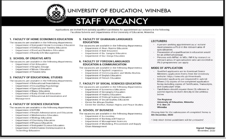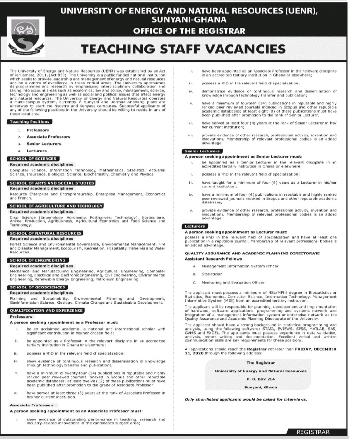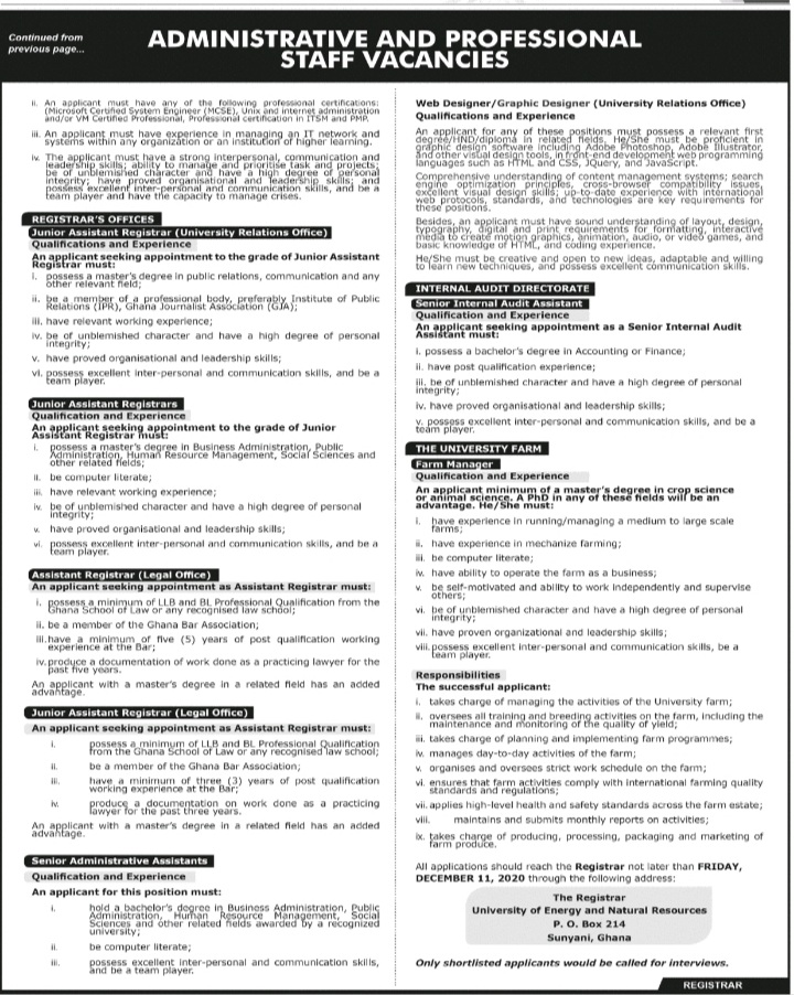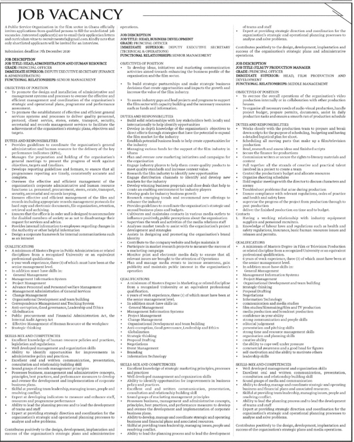 Prospective job seekers can find below the advertised jobs in the November 30, 2020 edition of Daily Graphic as published in the paper today.