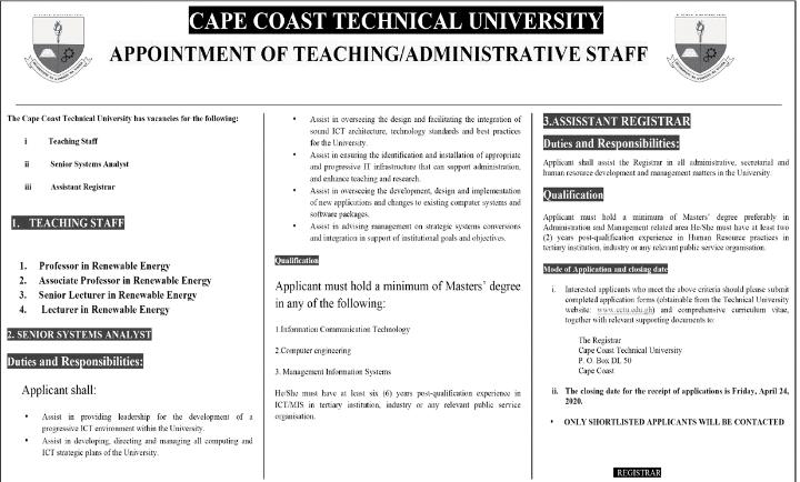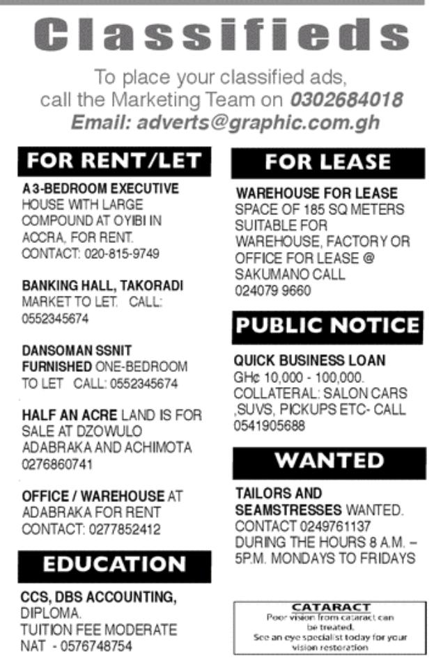 Prospective job seekers can find below the advertised jobs in the March 30, 2020 edition of Daily Graphic as published in the paper today.