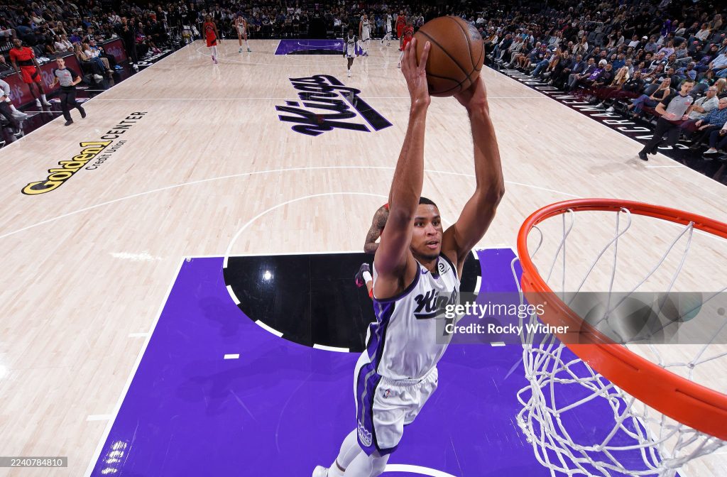 Keegan Murray #13 of the Sacramento Kings goes up for the dunk during the game against the Toronto Raptors. (Photo by Rocky Widner/NBAE via Getty Images)