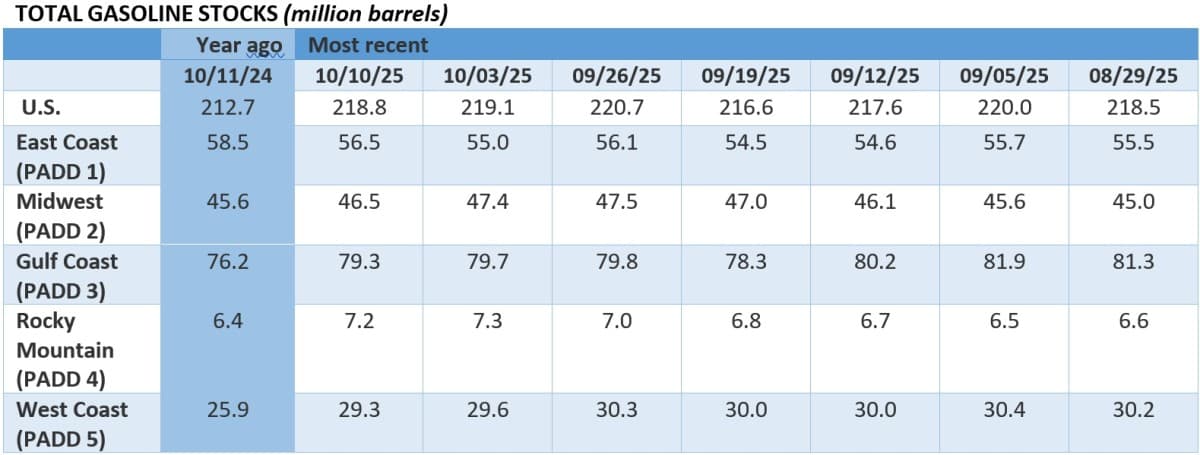 The re-imposition of US import tariffs on China and the concurrent promise of a Trump-Putin summit in Budapest have further depressed oil sentiment, sending ICE Brent to 61 per barrel as most of the past years’ geopolitical risk premium has dissipated. Higher-than-expected US oil inventory builds have added to fears of there being more crude than 2025 levels of demand would require, implying that oil below $60 per barrel might not be that far away.
