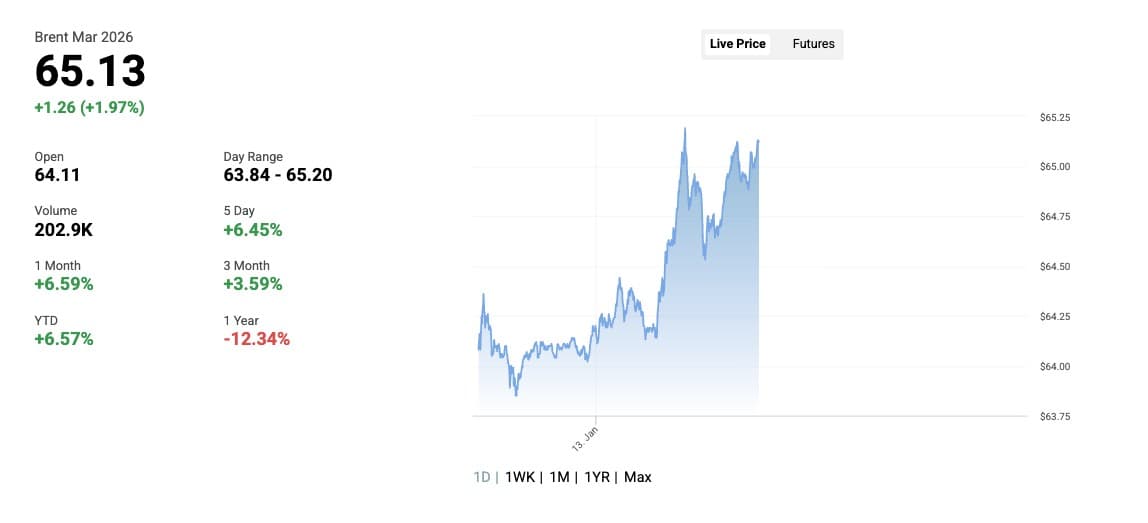 While Brent was trading at $65.13, up 1.9%.