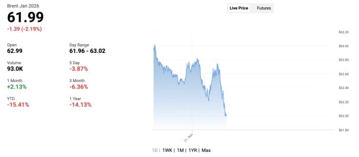 Brent crude, for its part, had fallen 2.19% to $61.99…