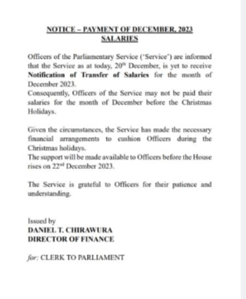 This is because, as of December 20, 2023, the Parliamentary Service has yet to receive notification of the transfer of salaries for December 2023.