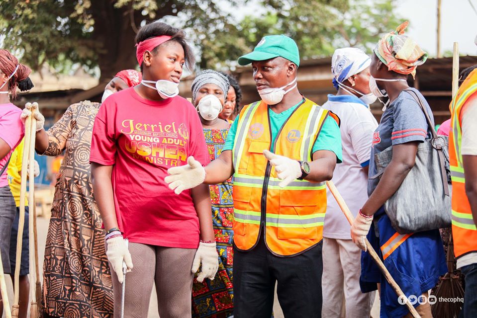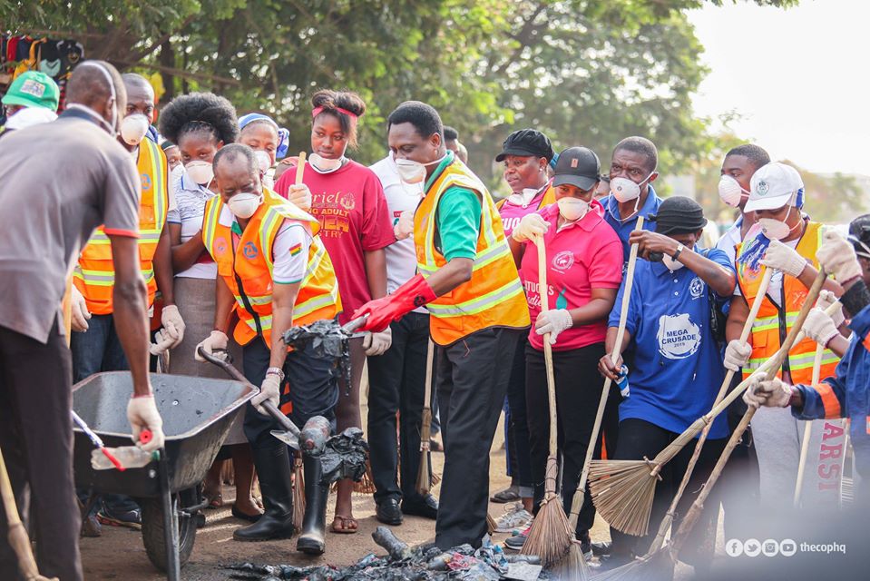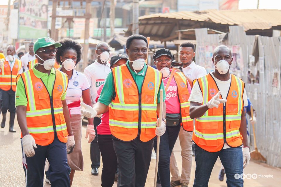 Geared up in working apparels, the Chairman of the Church of Pentecost, Apostle Erice Nyamekye led from the front as members of Ghana’s largest pentecostal movement swept through the nation – literally.