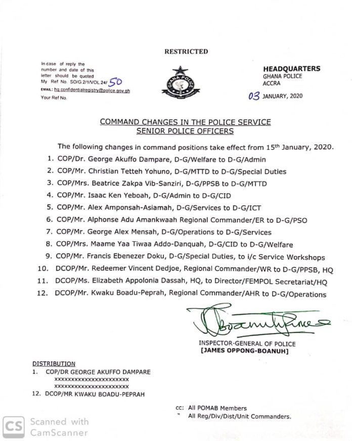 This happens to be the first reshuffle within the police service since James Oppong-Boanuh took over as IGP in 2019.