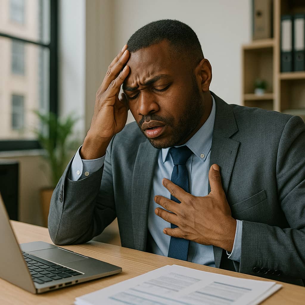 A banker in Accra feeling dizzy at work, unaware it’s an early sign of diabetes.