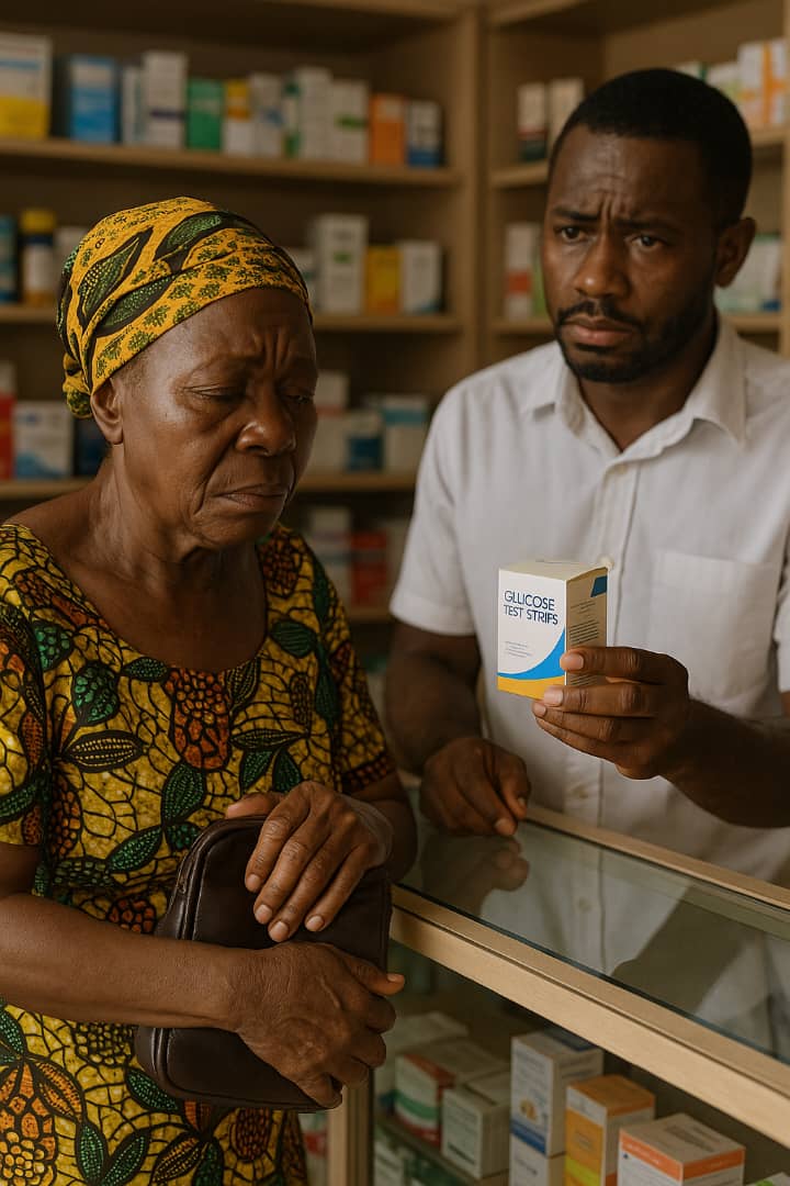 At a small pharmacy in Sunyani in the Bono Region, sixty-year-old Madam Alice Nyarko stands quietly at the counter, clutching her worn purse. Her hands shake slightly as she asks for a pack of glucose test strips. When the attendant tells her the price, one hundred and twenty cedis, she takes a deep breath, closes her purse, and forces a faint smile. “I’ll come back next week,” she says softly, though she knows she will not.
