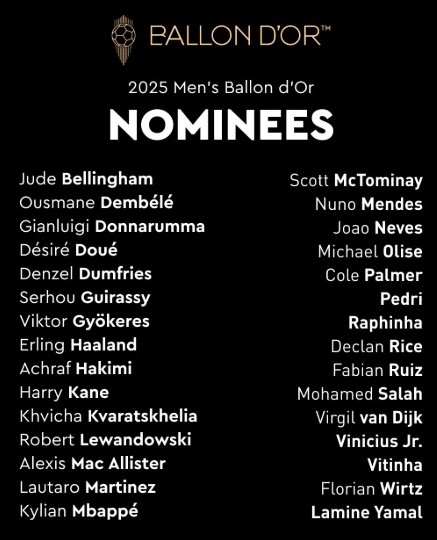 Nominated with the African trio are Chelsea’s Cole Palmer, Real Madrid’s Kylian Mbappe, FC Barcelona’s Lamine Yamal, among others. Yamal has also been nominated for the Young Player (Kopa) Award.